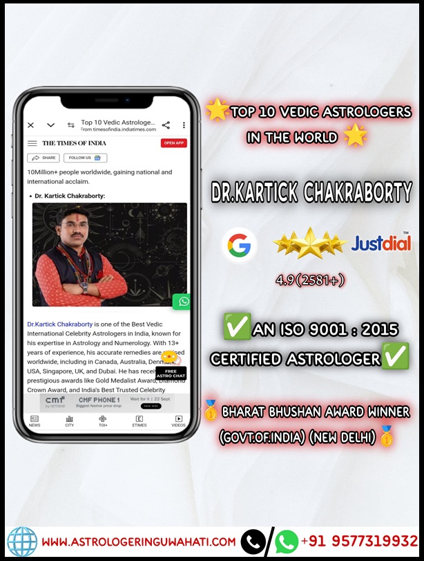 Astrologer Dr.Kartick Chakraborty is one of The Best Celebrity International Astrologer in Guwahati, Assam. Celebrity Astrologer Dr.Kartick Chakraborty is one of The Top Best Famous Astrologer In Guwahati, Assam. Dr.Kartick Chakraborty is a highly respected Most Popular Demanding astrologer in Guwahati, Assam. With over 24+ Years of experience in the field of comprehensive Astrology - Numerology -Energy Healling - Grandmaster Prediction - Numerology Number Base Predictions- Universal Prayer- Black Magic Kriya - Maha Vashikaran Kriya - Love Relationship Problem Specialist - Marriage Life Related Problem Specialist - Angel's Prayer - Answer From Goddess Maa Kali Reading Specialist- Divorce Problem solutions - Love Breakup Problem solutions Specialist And Kamakhya Tantra Vidya Kriya Specialist. Dr.Kartick Chakraborty has successfully provided precise and effective astrological remedies to a diverse range of clients from India and other Foreign countries like as - Italy - Malaysia - Switzerland - Vietnam - Paris - France, Germany - Brazil - Canada - Phillipines - Azerbaijan - South Africa, Denmark - Bangladesh - Netherlands- Cambodia - Dominica - Egypt - Ghana - Finland - Indonesia- Japan - New Zealand - Singapore - Mauritius - Oman - Nigeria - Spain - Sweden - Turkey- Australia- Japan - Spain - Mexico - Saudi Arabia - Japan - Tanzania - Qatar - America (U.S.A) - Dubai (U.A.E) - and the UK (London). .
