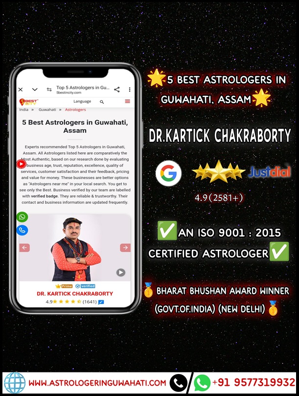 Best Astrologer in Guwahati, Assam – Dr. Kartick Chakraborty. Over 24+ years Of experience Dr.Kartick Chakraborty has successfully catered to more than 18 Lakhs clients around the world.