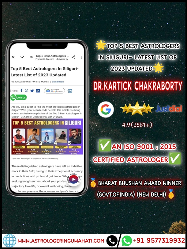 For those struggling with life's challenges and seeking guidance from the best astrologers in India, Dr.Kartick Chakraborty is undoubtedly the right person to approach. His customized solutions, quick and effective remedies, and high accuracy rate can help you surmount your obstacles and attain your aspirations. If you're looking for the best astrologer in India or the Best Celebrity astrologers in Guwahati,Assam, you may want to consider the services of the renowned and well-respected astrologer in Guwahati, Assam-Dr. Kartick Chakraborty.